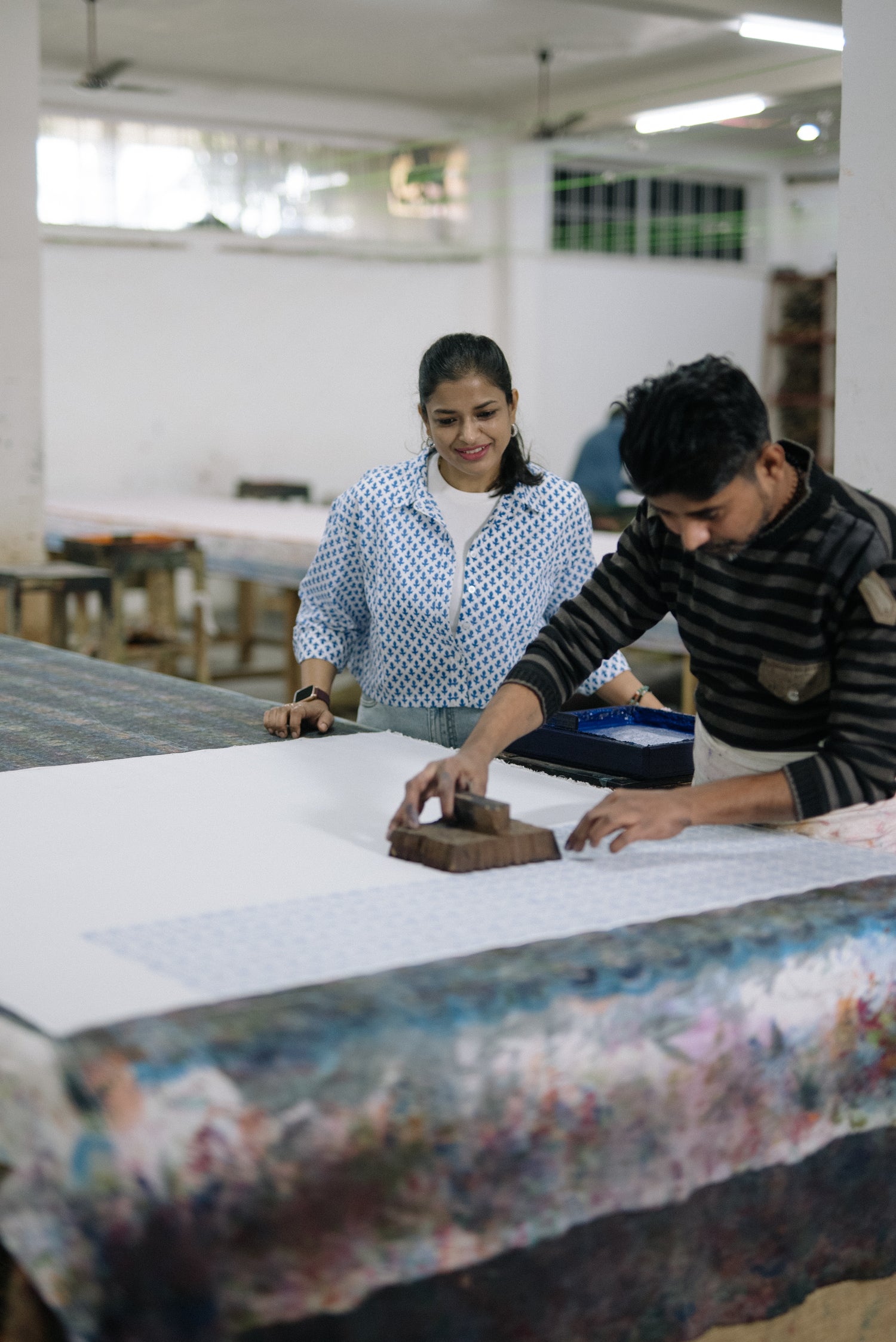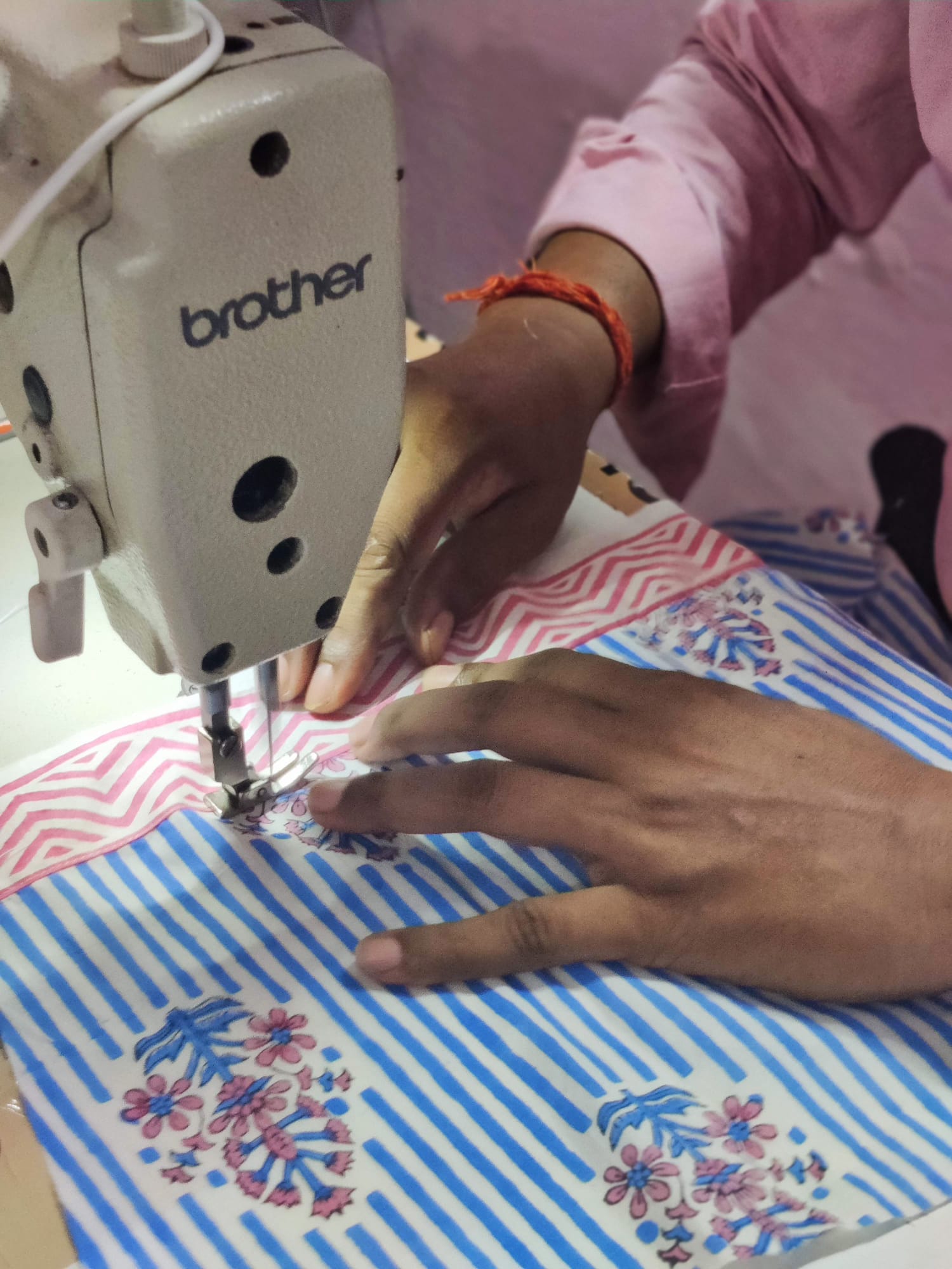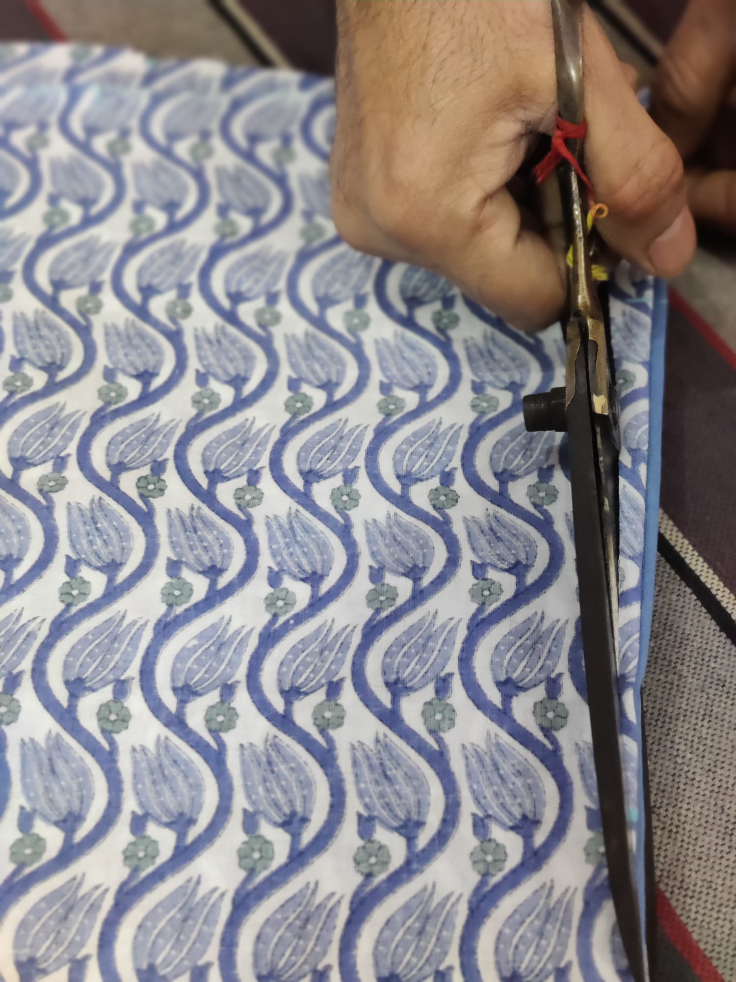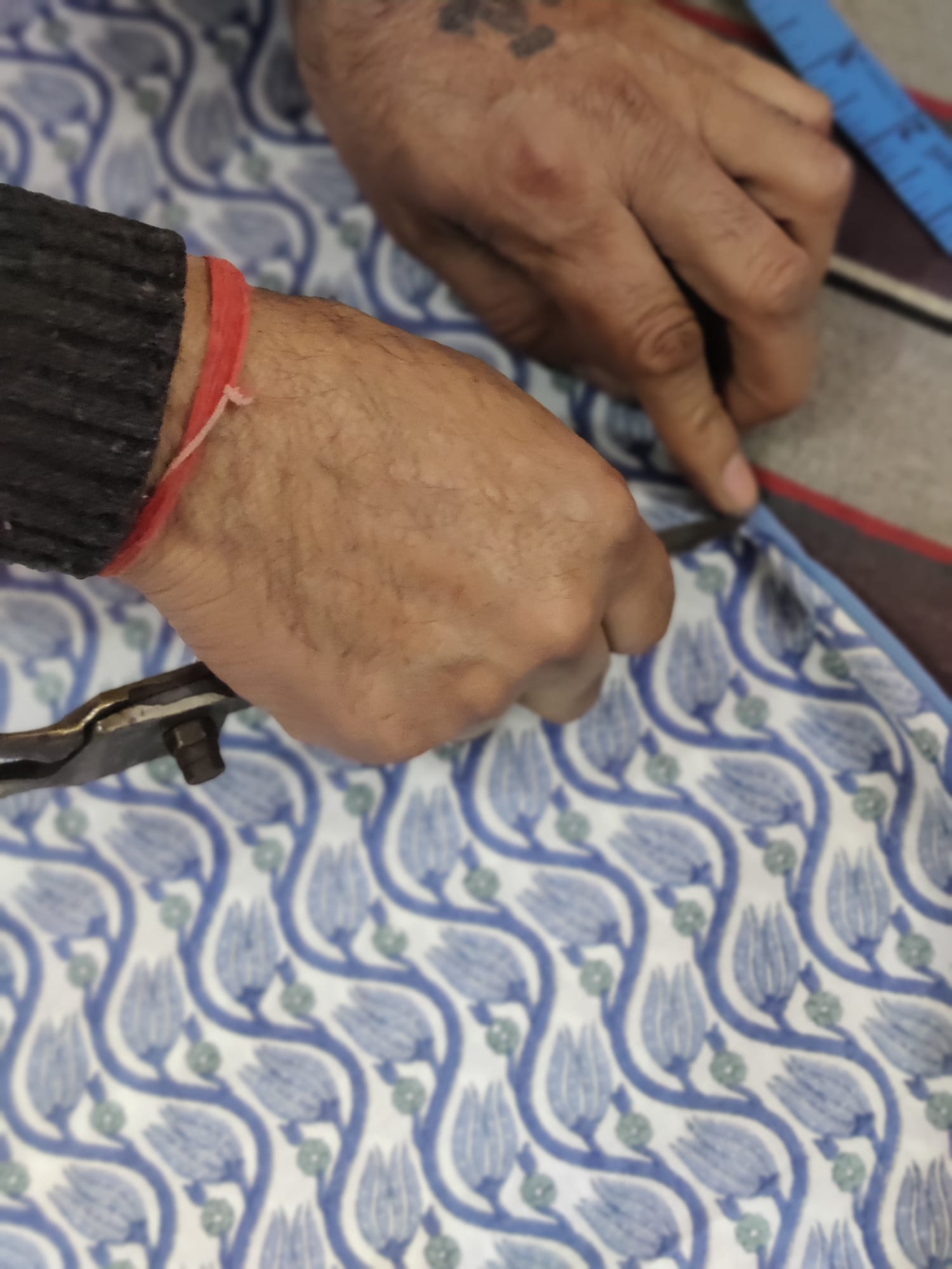Cutting the fabric is an art in itself. We face the challenge of working with fabrics that often come in specific cuts due to the limitations of handblock printing tables. Our skilled hands navigate through these challenges, ensuring precision and minimizing waste.