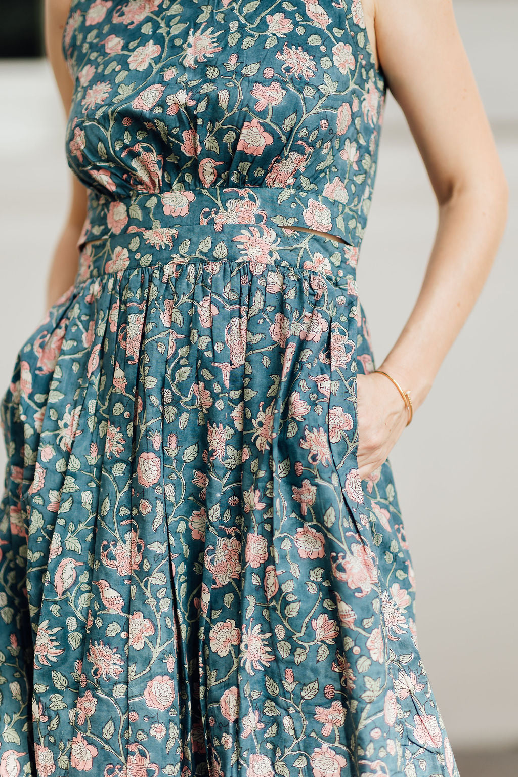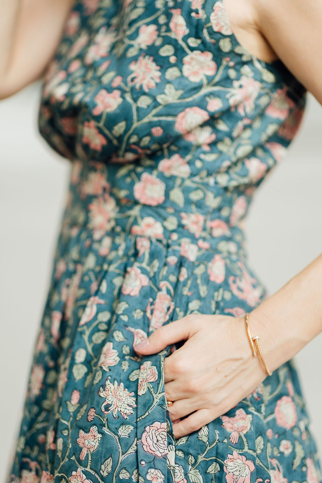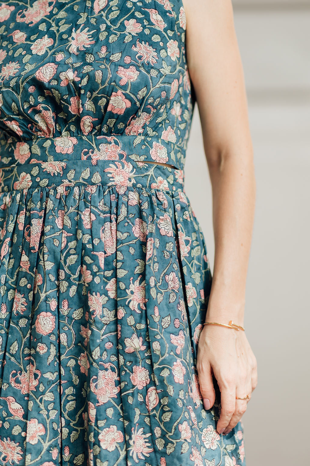 Each piece is carefully stitched and finished in-house in Noida, India. As the dress is handmade, slight variations may occur, enhancing the uniqueness of your garment.