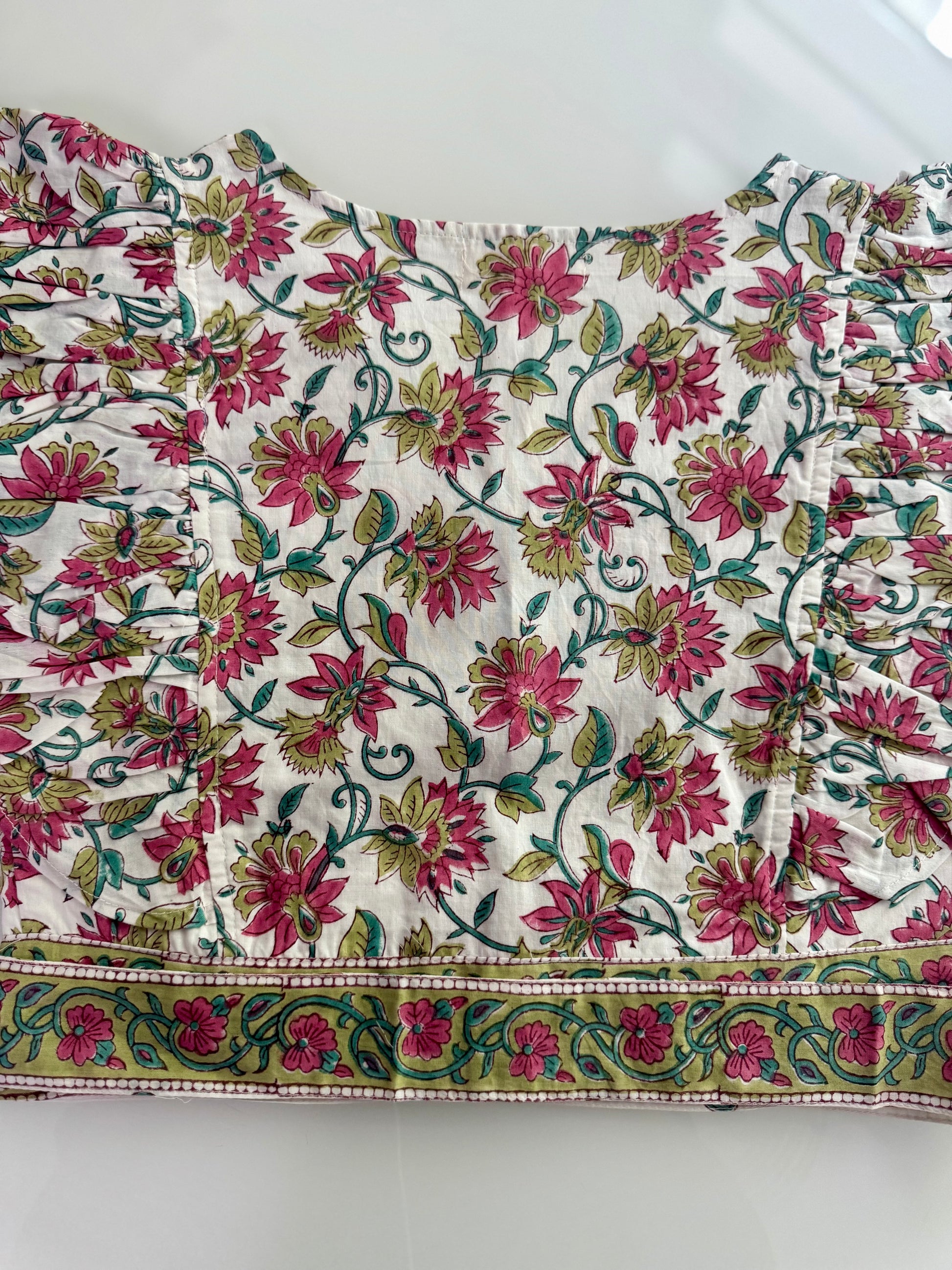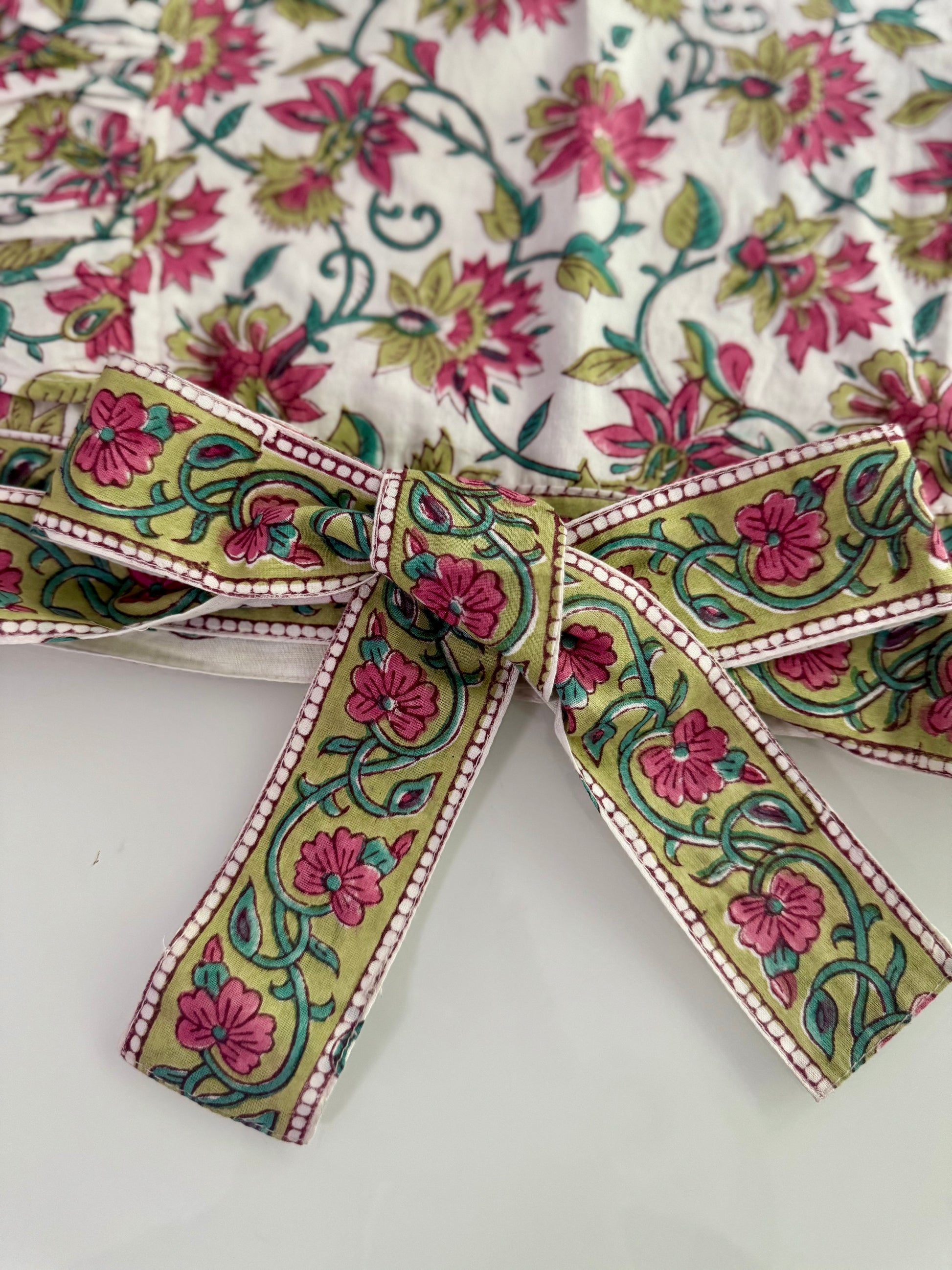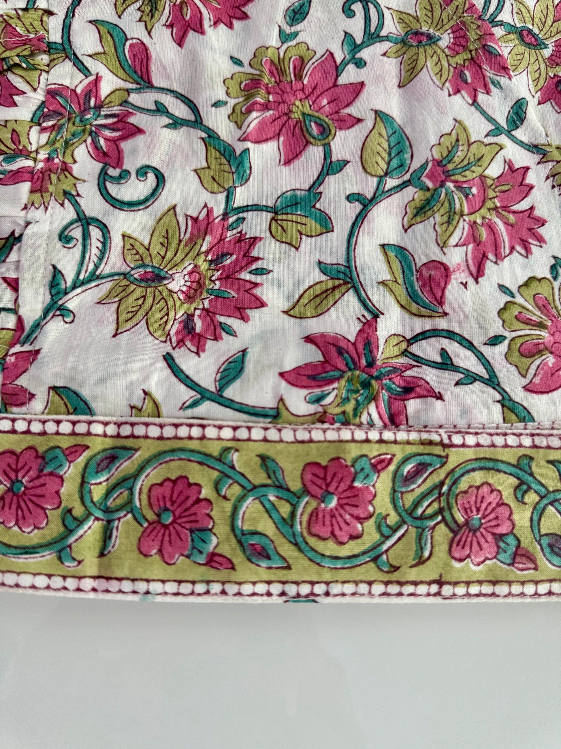 The intricate prints are handblock printed by our skilled artisans in Jaipur, while the stitching and finishing are meticulously done in-house in NOIDA, India.